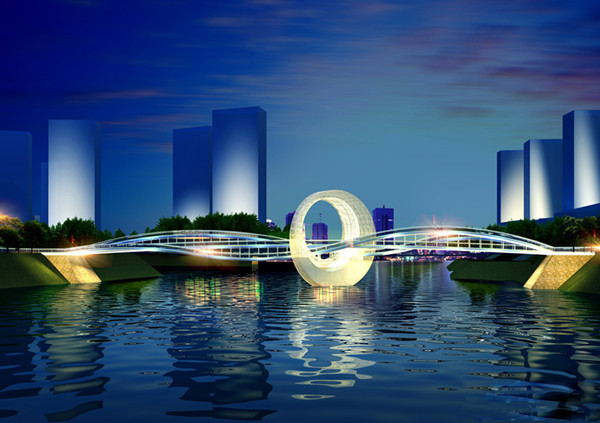作為城市陽臺(tái)景觀工程的重要組成部分,大盧河景觀橋是連接大盧河?xùn)|、西兩岸的景觀通廊,是青島靈山灣旅游度假區(qū)內(nèi)標(biāo)志性景觀。方案設(shè)計(jì)的構(gòu)思為“皎月橋”,橋梁全長(zhǎng)150米,結(jié)構(gòu)為多跨連續(xù)梁橋,共分5跨,單跨標(biāo)準(zhǔn)跨徑為30米,橋?qū)?0.6米,橋頂設(shè)計(jì)標(biāo)高約7米,營(yíng)造“海上生明月,天涯共此時(shí)”的意境。