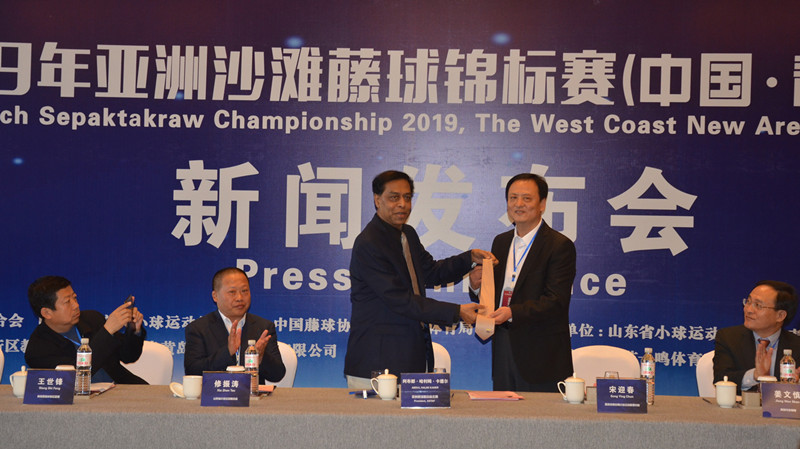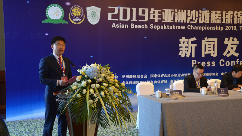 4月2日,2019年亞洲沙灘藤球錦標(biāo)賽(中國·青島站)新聞發(fā)布會在青島西海岸新區(qū)舉行。會上宣布了本次比賽正式落地青島西海岸新區(qū),將于今年7月9日至12日在青島金沙灘啤酒城舉行。