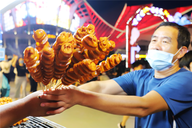▲游客買烤面筋。記者 王培珂 報(bào)道