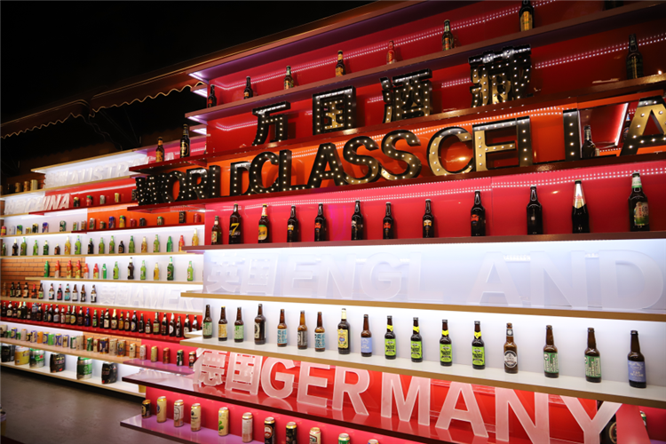 ▲“萬國酒藏”展區(qū)展出來自世界各國的上百種啤酒。