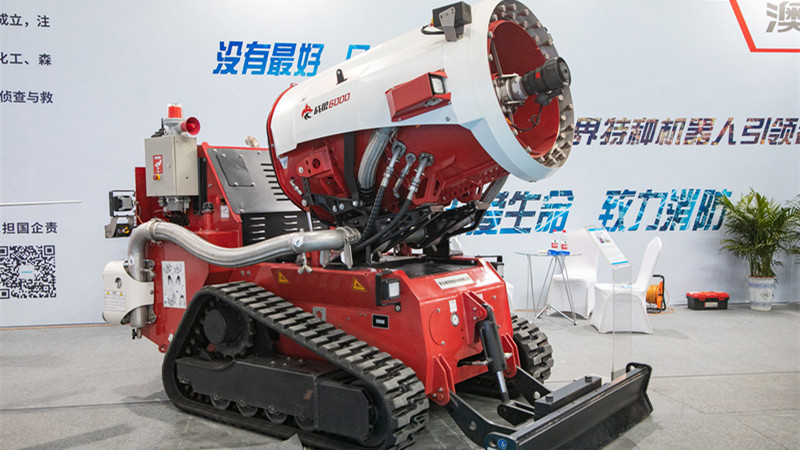 在無人直升機旁邊,一個“大塊頭”也被不少人圍觀?!斑@是第一次亮相展會的霧炮消防滅火排煙機器人。”劉發(fā)德告訴記者,該機器人是一款集滅火、排煙和偵查功能于一體的多功能消防機器人,其帶有的多種噴水模式,能夠適用于不同情況下的滅火,可以快速移除火中熱量并降低溫度,從而實現(xiàn)滅火和排煙功效。
