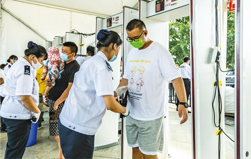▲安檢人員對入城游客進行細致檢查?! ?nbsp;