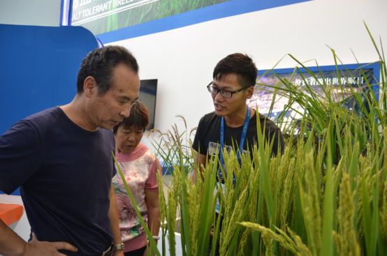 以“藍(lán)色脈動(dòng)”為主題的山東·青島館集中展示了山東及青島推進(jìn)新舊動(dòng)能轉(zhuǎn)換、實(shí)施海洋科技自主創(chuàng)新的新成果,以及青島西海岸新區(qū)實(shí)施海洋戰(zhàn)略、率先藍(lán)色跨越的新亮點(diǎn)。哈工程、北船重工、海西重機(jī)、華大基因、三泰集團(tuán)等駐青高校、企業(yè)集中亮相,主要展出海工裝備、船舶制造、海洋生物、海洋醫(yī)藥、基因工程、海水淡化等藍(lán)色科技創(chuàng)新發(fā)展技術(shù),凸顯藍(lán)色經(jīng)濟(jì)發(fā)展的無限潛力。在青島海水稻研究發(fā)展中心展區(qū),負(fù)責(zé)人杜德樂正在介紹“海水稻”:“我們此次參展的水稻種質(zhì)共有30份,包括優(yōu)質(zhì)品系、有色品系、耐鹽堿品系和多倍體品系四大類。其中耐鹽堿品系主要是針對(duì)鹽堿灘涂培育的耐性品種,俗稱‘海水稻’。相比普通水稻,可在鹽堿化的土壤環(huán)境中生長(zhǎng),這是袁隆平院士牽頭參與的課題。”歌爾科技VR體驗(yàn)區(qū)排起了長(zhǎng)隊(duì),不時(shí)傳來體驗(yàn)者的陣陣歡呼。